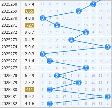 3d第2025282期开奖号码为416,十位上开4号球,开出了小数、偶数、1路号码。根据3d十位号码的012路走势来分析,本期重点杀258这三个号码。